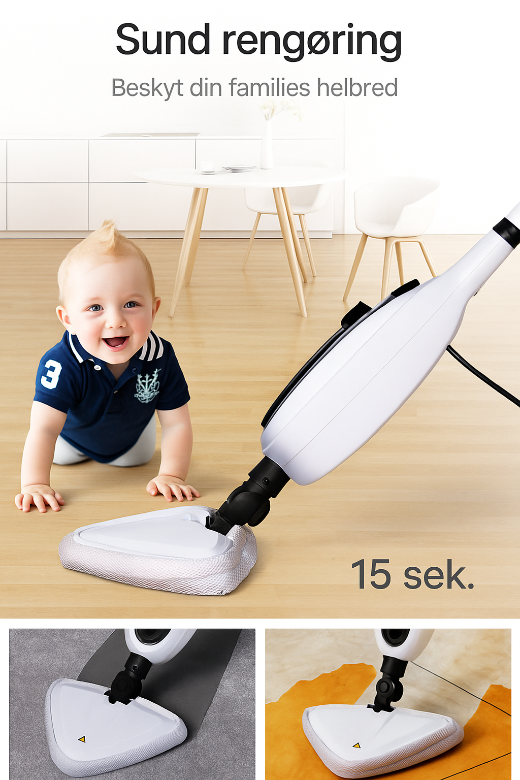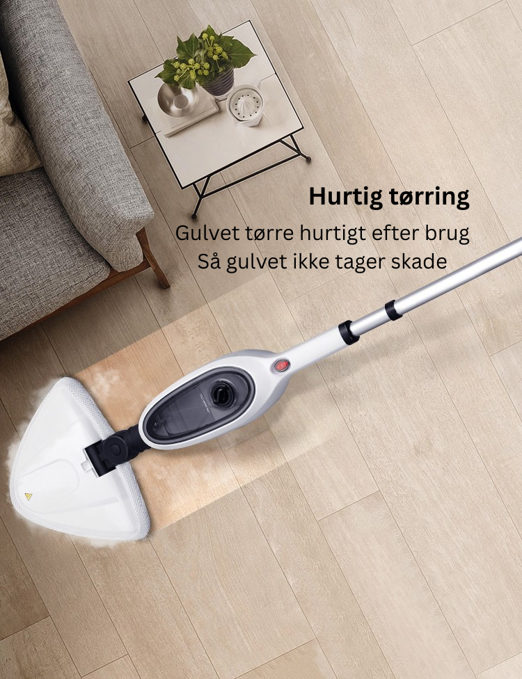 Clearwell™ Multifunktionel Dampmoppe fjerner snavs og op til 99% af almindelige husholdningsbakterier uden kemikalier. Perfekt til hårde gulve, tæpper og tekstiler.